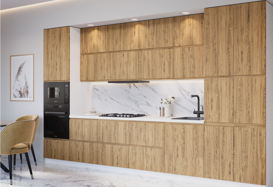Кухня VIP-master Вудлайн Люкс – це ідеальне рішення для тих, хто цінує стиль, функціональність та надійність у кожному елементі свого кухонного простору. Цей кухонний гарнітур шириною 380 см виконаний у сучасному стилі модерн, що дозволяє йому легко вписатися в будь-який інтер'єр. Фасади з ДСП шпонованого матеріалу надають кухні елегантний вигляд, а корпус з ламінованої ДСП забезпечує довговічність та простоту в догляді. Завдяки продуманій конструкції та якісним матеріалам, ви отримуєте не лише стильний, а й практичний гарнітур, що задовольнить всі ваші потреби. Кухня VIP-master Вудлайн Люкс стане чудовим вибором для тих, хто прагне створити комфортне та затишне середовище для приготування їжі та сімейних зібрань.
