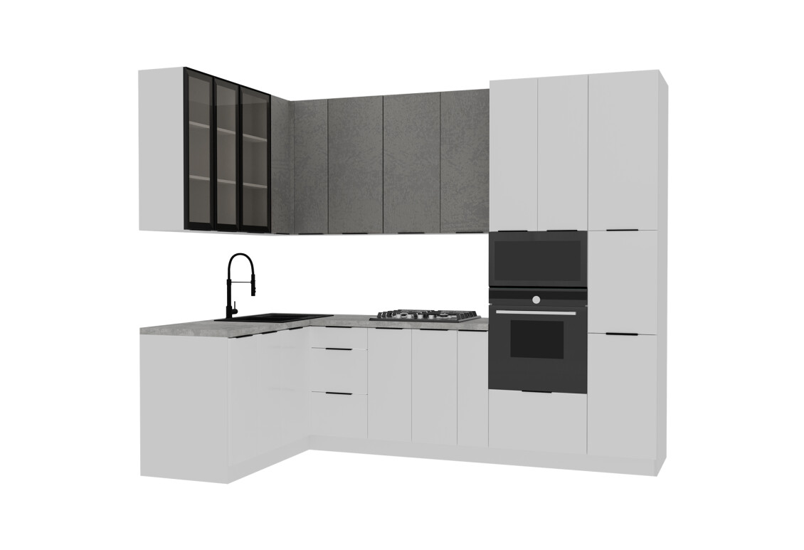 Характеристики товару Кутова кухня Діплос / Diplos Blum 1.6х2.8 MebelStar, бетон сірий / білий agt