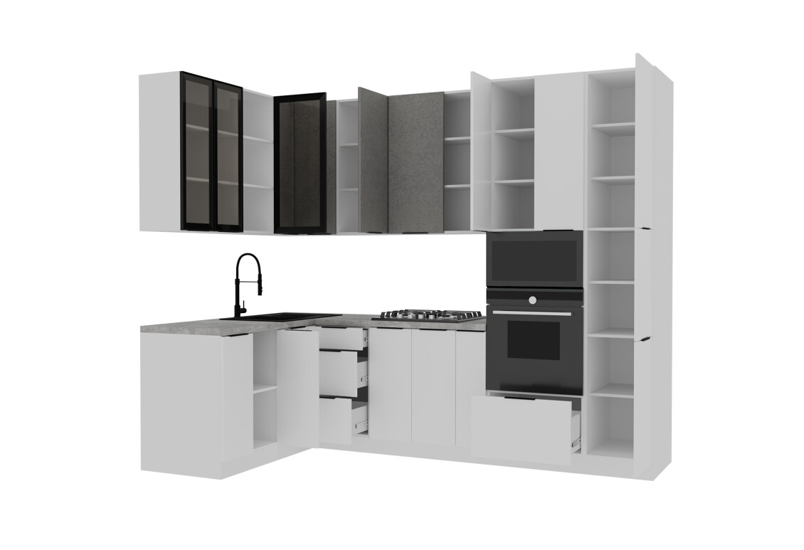 Кутова кухня Діплос є частиною модульної системи Модульна кухня Діплос / Diplos Blum MebelStar, яка складається з 155 елементів. Ви можете підібрати різноманітні кухонні гарнітури, нижні та верхні кухонні тумби, пенали, стільниці та корпуси, що дозволяє створити кухню, яка ідеально відповідатиме вашим потребам та стилю. Завдяки такій системі, ви зможете легко комбінувати елементи, створюючи унікальний інтер'єр вашої кухні.