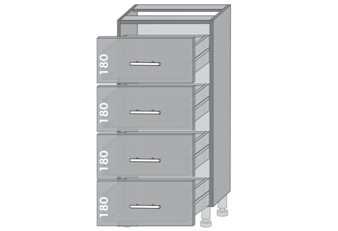 Низ 404 шухляди Хай Глосс від виробника MebelStar – це ідеальне рішення для вашої кухні, яке поєднує в собі елегантність, функціональність та доступну ціну. Ця нижня кухонна тумба виготовлена з високоякісних матеріалів, що забезпечують надійність та довговічність. Глянцевий фасад з МДФ надає виробу стильного вигляду, а ламінована ДСП корпусу гарантує стійкість до механічних пошкоджень. Доступність різноманітних кольорів корпусу і фасаду дозволяє легко підібрати тумбу під будь-який інтер'єр, від класичного до сучасного. Завдяки своїм компактним розмірам, ця тумба чудово впишеться навіть у невеликі кухні, забезпечуючи достатньо місця для зберігання. Можливість купівлі як оптом, так і в роздріб робить цю пропозицію ще більш вигідною для наших клієнтів.