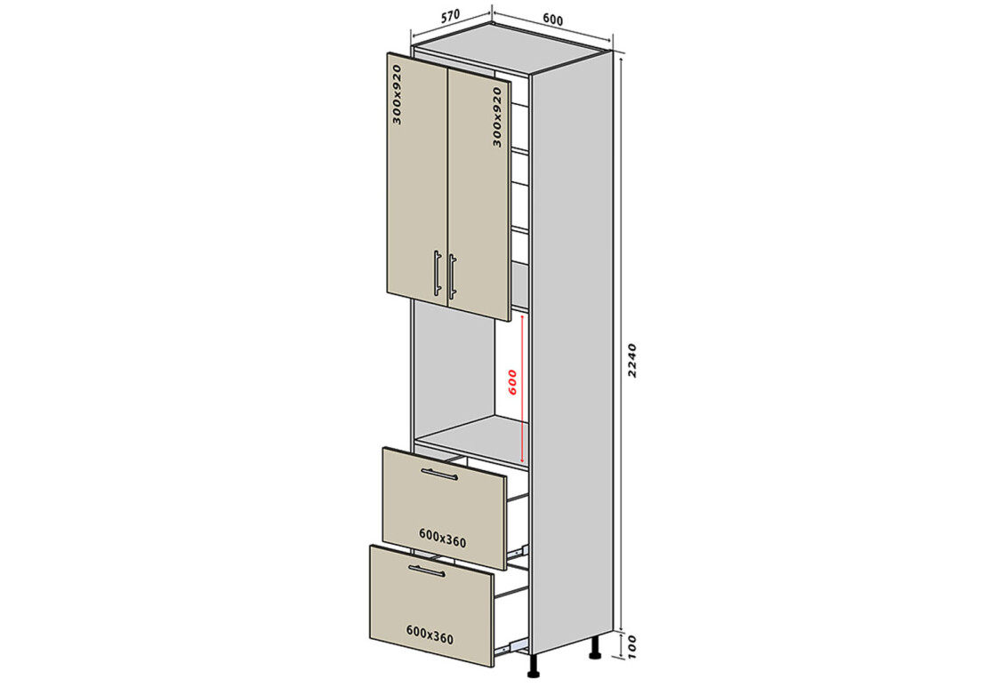 Пенал Н21 Пенал 2Д2Ш 234 New Вудлайн / WoodLine VIP-master – це ідеальне рішення для вашої кухні, яке поєднує в собі функціональність, естетику та надійність. Його висота 234 см, ширина 60 см і глибина 57 см дозволяють максимально ефективно використовувати простір, надаючи вам достатньо місця для зберігання кухонного приладдя. Виготовлений з якісних матеріалів, таких як ламінована ДСП для корпусу та шпонована ДСП для фасаду, цей пенал не лише стильний, а й довговічний. Завдяки різноманітності доступних модифікацій, ви зможете обрати оптимальний колір для свого інтер'єру: від класичних відтінків, таких як слонова кістка, дуб аппалачі, до сучасних варіантів, таких як бетон чи антрацит. Це дозволяє легко інтегрувати пенал в будь-який стиль кухні, підкреслюючи її унікальність.