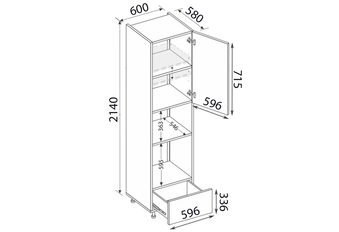 - Розмір: ширина – 60.00 см, висота – 214.00 см, глибина – 58.00 см – ідеальні пропорції для компактних кухонь.