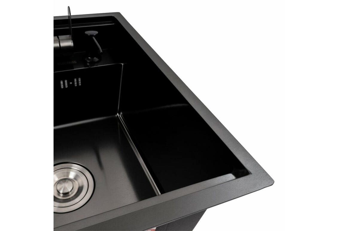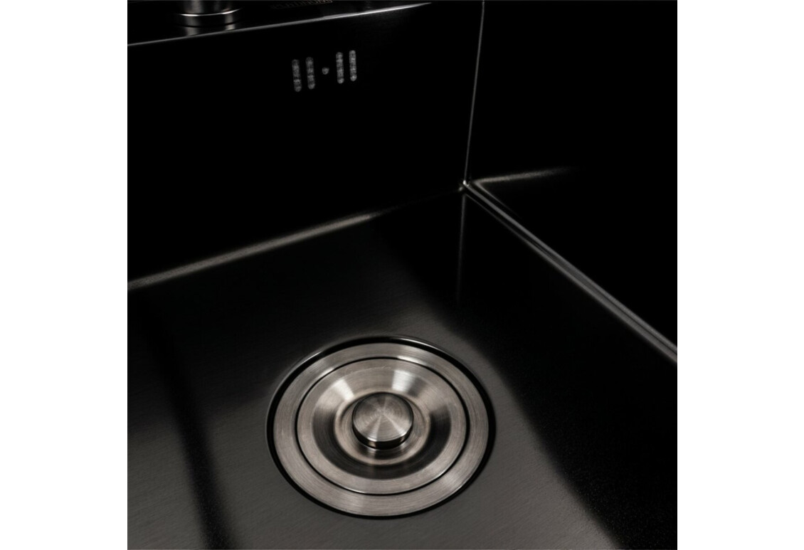 Кухонна мийка CM 40*50 прихована PVD чорна від виробника Platinum – це ідеальне поєднання елегантності та функціональності для вашої кухні. Ця модель виготовлена з високоякісної нержавіючої сталі SUS 201, що забезпечує надійність та тривалий термін служби. Матова поверхня мийки не лише додає стильного вигляду, але й робить її менш схильною до появи подряпин і відбитків пальців, що є важливим аспектом для сучасних кухонь. Ця квадратна мийка з центральним розташуванням чаші має оптимальні розміри: ширина 40 см, висота 22 см та глибина 50 см. Глибина чаші у 220 мм дозволяє комфортно мити посуд, не боячись розбризкування води. Завдяки отворам під змішувач та дозатор, ви зможете зручно організувати робочий простір, що робить цю мийку ще більш функціональною. Врізний монтаж забезпечує легкість встановлення, а також дозволяє інтегрувати мийку в будь-який кухонний інтер'єр.
