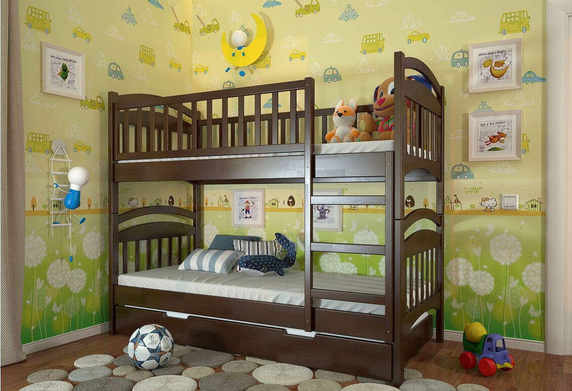Двоярусне ліжко Arbor Drev Смайл — ідеальне рішення для компактного розміщення спальних місць у дитячій кімнаті або в умовах обмеженого простору. Виготовлене з натурального дерева сосни, це ліжко не лише надійне, але й екологічно чисте. Його стильний дизайн в кольорі темний горіх гармонійно впишеться в будь-який інтер'єр, додаючи йому сучасного вигляду. З двома спальними місцями розміром 80х200 см, це ліжко стане чудовим вибором для двох дітей або для гостей. Завдяки різноманітним доступним модифікаціям, ви можете обрати ліжко, яке найкраще відповідає вашим потребам: спальні розміри 80х200, 90х200, 80х190, 90х190, а також кольори — білий, вільха, сірий, темний горіх, венге, горіх та яблуня локарно, венге магія.
