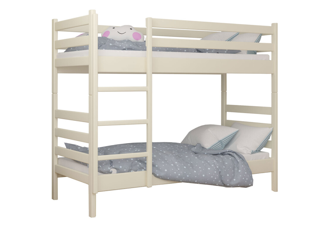 Ліжко двоярусне Mebigrand Соня – це ідеальне рішення для тих, хто цінує комфорт, надійність та естетику. Виготовлене з масиву сосни, це ліжко поєднує в собі натуральність деревини та стильний дизайн у стилі прованс. Його висота 170 см і ширина 86 см роблять його зручним для розміщення в будь-якій кімнаті, а два спальних місця (розміри 80х190 та 80х200) дозволяють забезпечити комфортний сон для двох дітей або підлітків. Дерев'яна конструкція гарантує міцність та довговічність, а також створює затишну атмосферу в інтер'єрі.