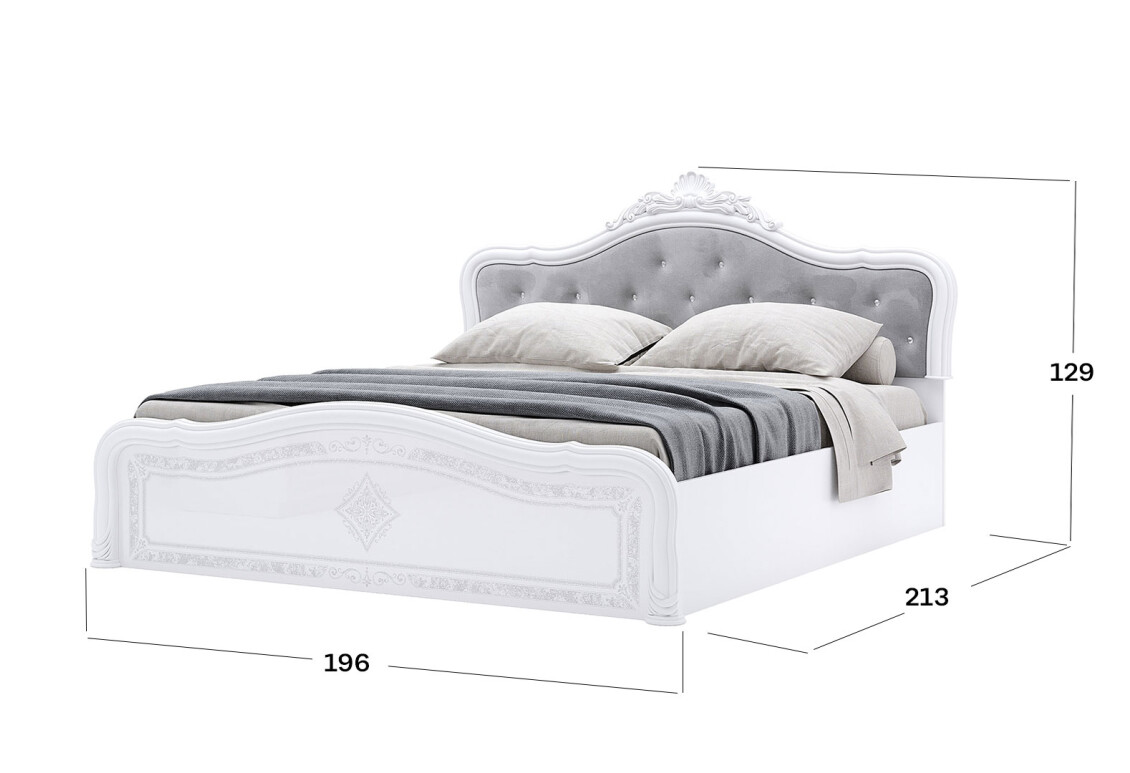 Ліжко MiroMark Луїза Люкс 160х200 см підйомне з короною в білому кольорі – це ідеальний вибір для тих, хто цінує комфорт та елегантність у своїй спальні. Це двоспальне ліжко не лише забезпечує достатньо простору для сну, але й має підйомний механізм, який дозволяє зручно зберігати речі під матрацом. Ліжко виконане з якісної ламінованої ДСП та глянцевої ДСП, що робить його стійким до механічних пошкоджень і легким у догляді. Класичний стиль, в якому виконано ліжко, додає вишуканості будь-якому інтер'єру. Зверніть увагу, що даний товар є комплектом, що складається з ліжка та корони, що підкреслює його естетичну привабливість.