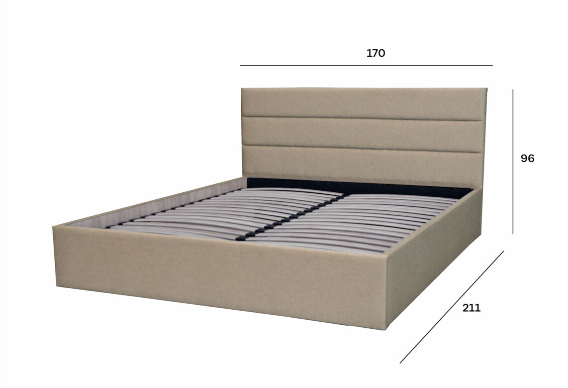 Ліжко має розміри 170 см в ширину, 96 см у висоту та 211 см в глибину, що забезпечує достатньо простору для комфортного сну. Підйомний механізм дає змогу легко отримати доступ до простору під ліжком, що особливо цінно для зберігання постільної білизни, сезонного одягу або інших речей. Це робить ліжко не лише стильним, але й функціональним елементом вашої спальні.