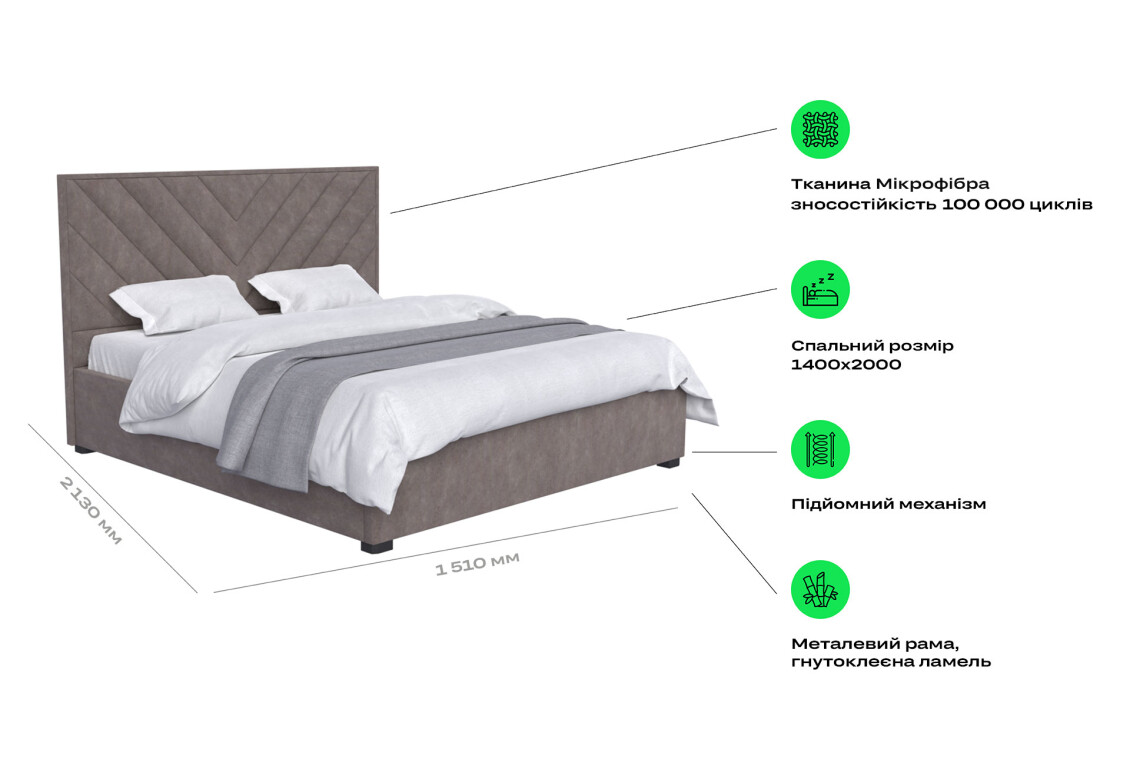 - Тип ліжка: підйомний механізм, подіум — ідеальне поєднання естетики та функціональності.