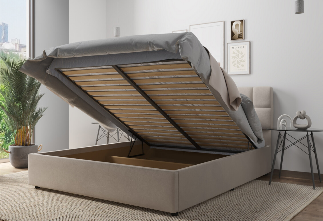 - Тип двоспального ліжка: підйомний механізм, подіум – зручність використання та додатковий простір для зберігання.