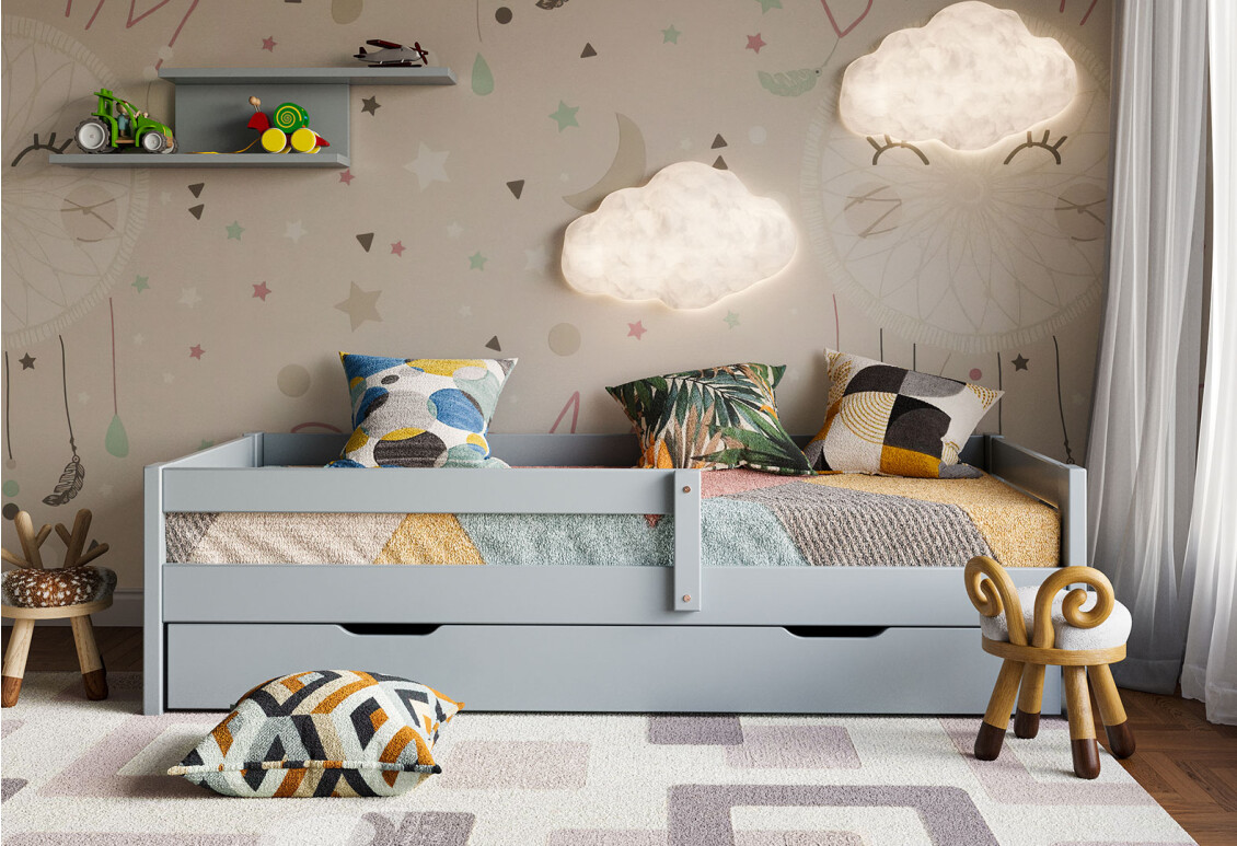 - Тип ліжка: дерев'яне з бортиками – додаткова безпека для дітей.