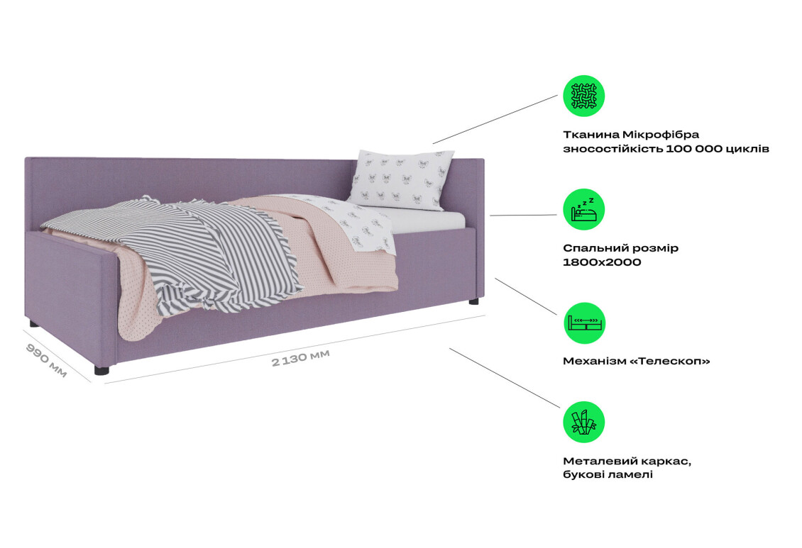 - Тип односпального ліжка: