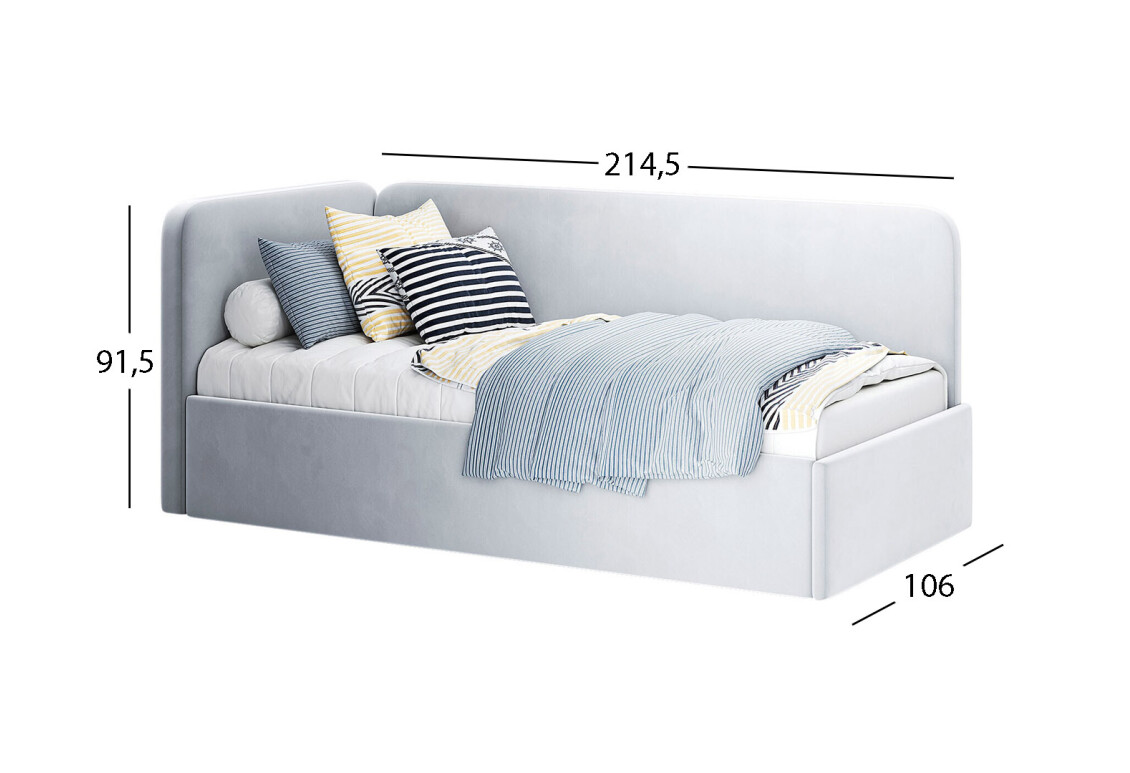 - Ліжко MiroMark Хеппі 90х200 см підйомне, світло-сіре, 1 шт – 214.50 см x 91.50 см x 106.00 см