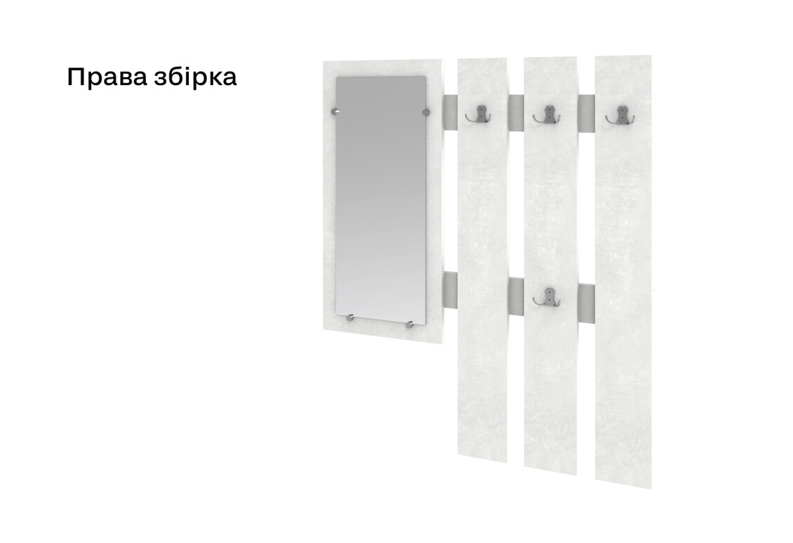 Вішак для одягу Київський стандарт Ліра з дзеркалом — це ідеальне рішення для вашого передпокою, яке поєднує в собі сучасний стиль та практичність. Завдяки своїм компактним розмірам (ширина 100 см, висота 110 см, глибина 16 см) він займе мінімум місця, водночас забезпечуючи достатньо місця для зберігання верхнього одягу. Виготовлений з якісної плити та МДФ, цей вішак відзначається надійністю та довговічністю, а стильний бетон стайл надає йому сучасного вигляду, що легко впишеться в будь-який інтер'єр. Доступні модифікації дозволяють вибрати правосторонню збірку, що робить його ще більш зручним для вашого простору.