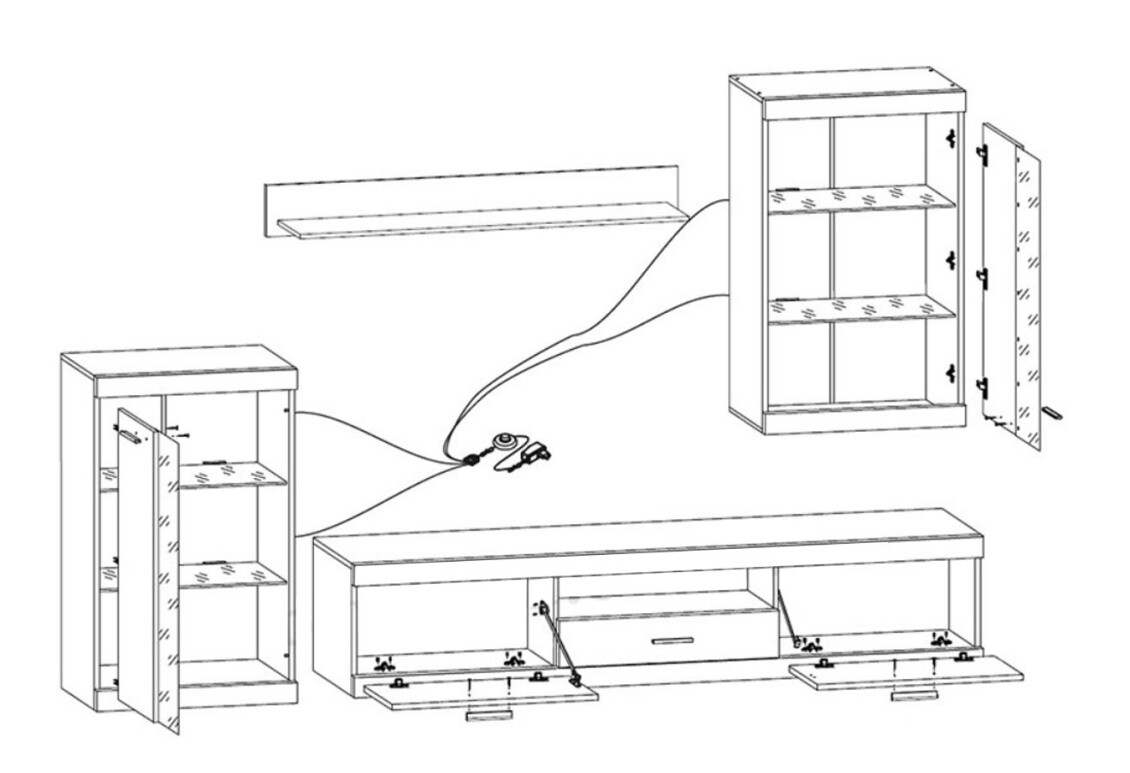 - Фурнітура: роликові напрямні - забезпечують плавне відкриття та закриття елементів стінки