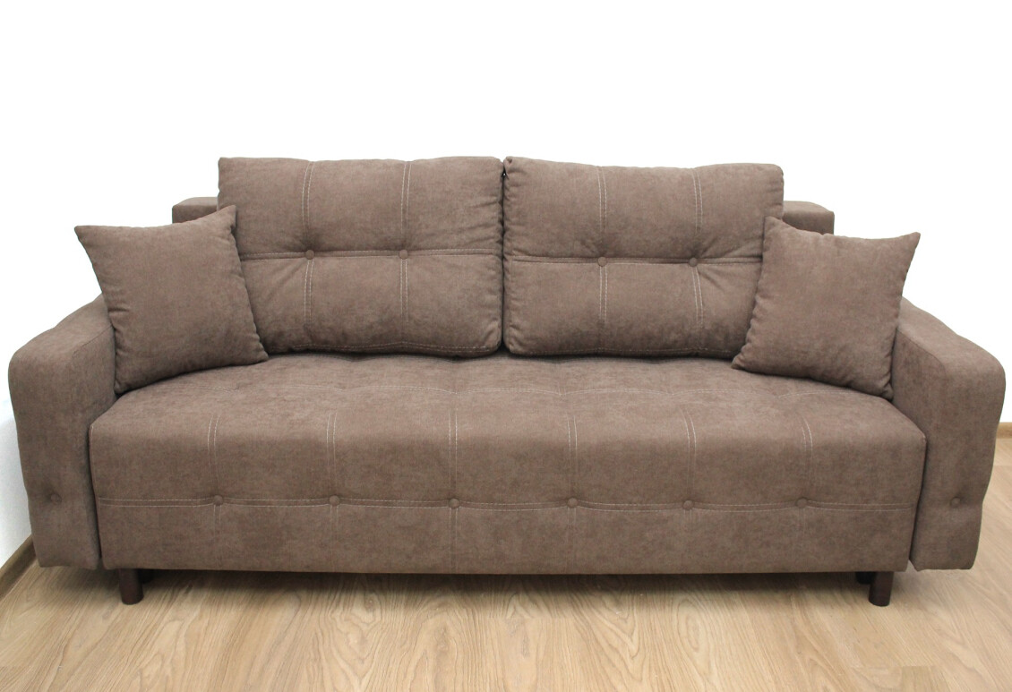 Диван Elegant Бенефіт 45 – це ідеальне рішення для вашого інтер'єру, яке поєднує в собі стиль, комфорт та практичність. Його розміри 220x90 см роблять його чудовим вибором для вітальні, спальні чи кабінету. Завдяки сучасному механізму трансформації єврокнижка, цей диван легко перетворюється на зручне спальне місце, що дозволяє вам насолоджуватися комфортом під час відпочинку. Диван також має вбудоване місце для зберігання речей, що робить його ще більш функціональним. Коричнева тканина не тільки виглядає елегантно, але й легко чиститься, що забезпечує довговічність використання. Важливою перевагою є можливість вибору між сірою та коричневою тканиною, що дозволяє підібрати оптимальний варіант для вашого інтер'єру.