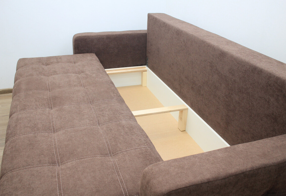 Трансформація механізму здійснюється шляхом виведення сидіння на себе (викатний або крокуючий спосіб), внаслідок чого звільняється місце з вмісткою нішею з-під сидіння. Тоді легко опускається спинка дивану і утворюється рівне спальне місце.