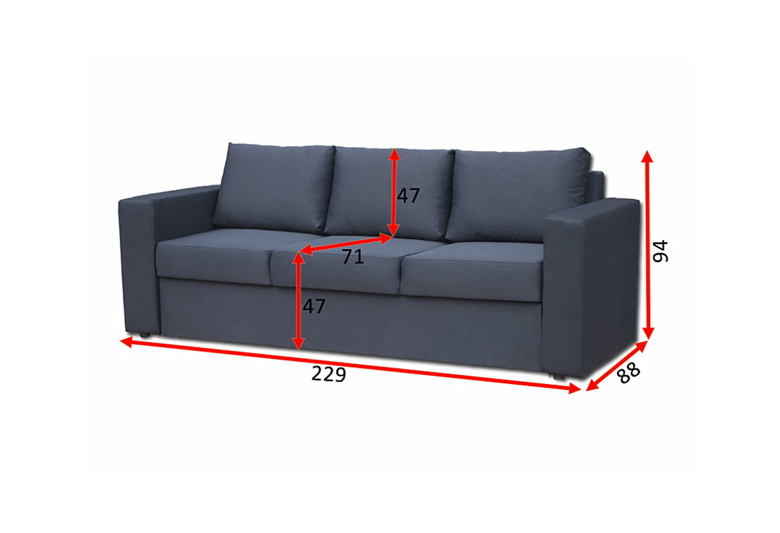 Розмір: ширина 229 см, висота 94 см, глибина 88 см – ідеальні габарити для комфортного використання.