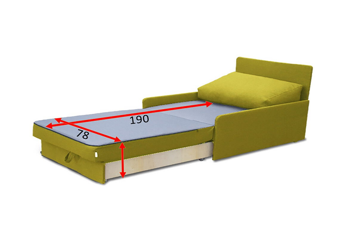 Спальний розмір дивану: 80х190 см (+/- 5 см)