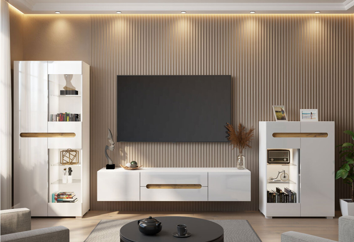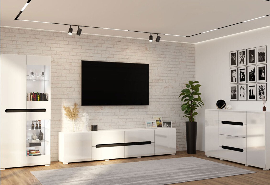 Модульна система Бянко складається з 42 елементів, серед яких ви знайдете тумби під TV, комоди, комплекти спалень, письмові столи, односпальні та двоспальні ліжка, тумби, вітальні, стінки, вішалки для одягу, звичайні шафи, взуттєві тумби, приліжкові тумби для спальні, вітрини, настінні полки шафки та дзеркала. Це дозволяє легко комбінувати різні елементи, адаптуючи інтер'єр під ваші уподобання та потреби. Завдяки такій різноманітності, ви зможете створити гармонійний простір, що відповідає всім вашим вимогам.