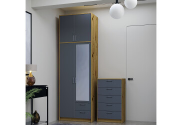 Шафа для одягу Doros Морган 3-дверна з 3 шухлядами та полицями 180 см, Білий ДСП