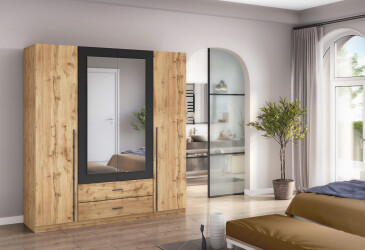 Шафа Світ Меблів Спейс чотиридверна з боковими полицями 180х220х57 см, дуб аппалачі / зелений димчастий