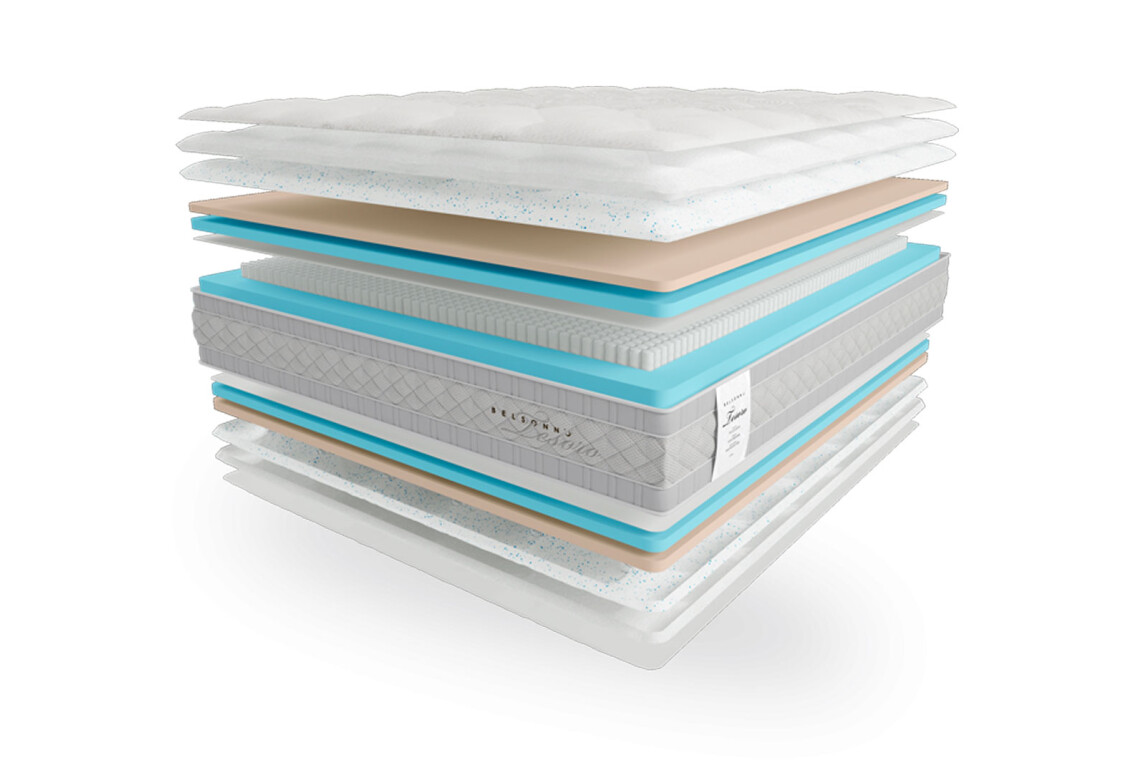- Наповнення матраца: Tocco di seta unica, Multipocket 1000, Tuffo Memoria — забезпечує комфорт і підтримку.