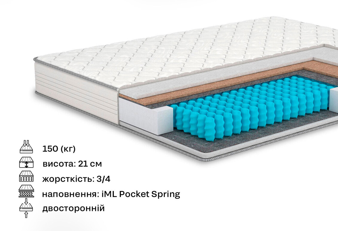 - Наповнення матраца: strong foam support, кокос, mix felt, iML® pocket spring, cotton coir