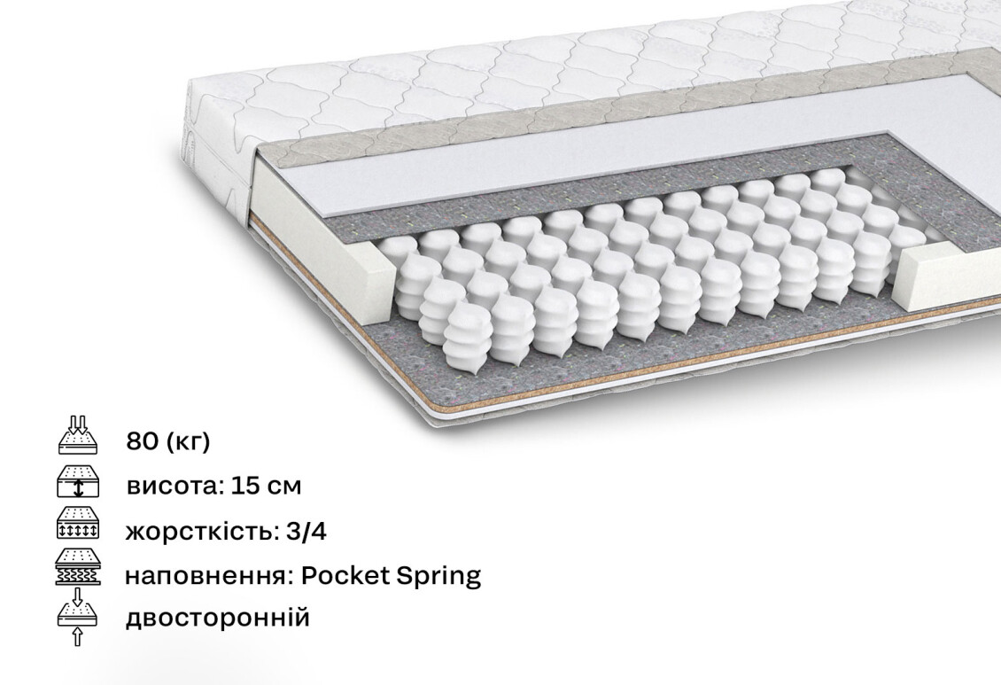 - Наповнення матраца: термофайбер, кокос, air foam, Пружини Pocket spring – забезпечують комфорт та довговічність.