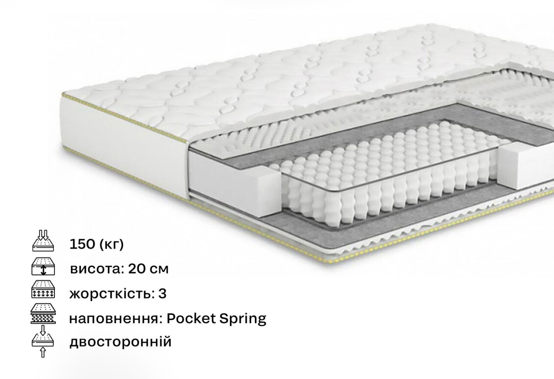 - Тип матраца: на незалежній пружині Pocket