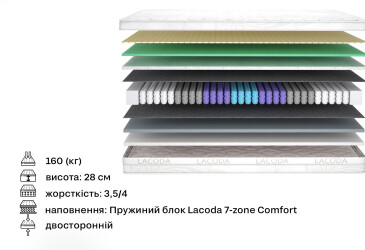 - Наповнення матраца: латекс натуральний, пружини Pocket spring, піна, термоповсть