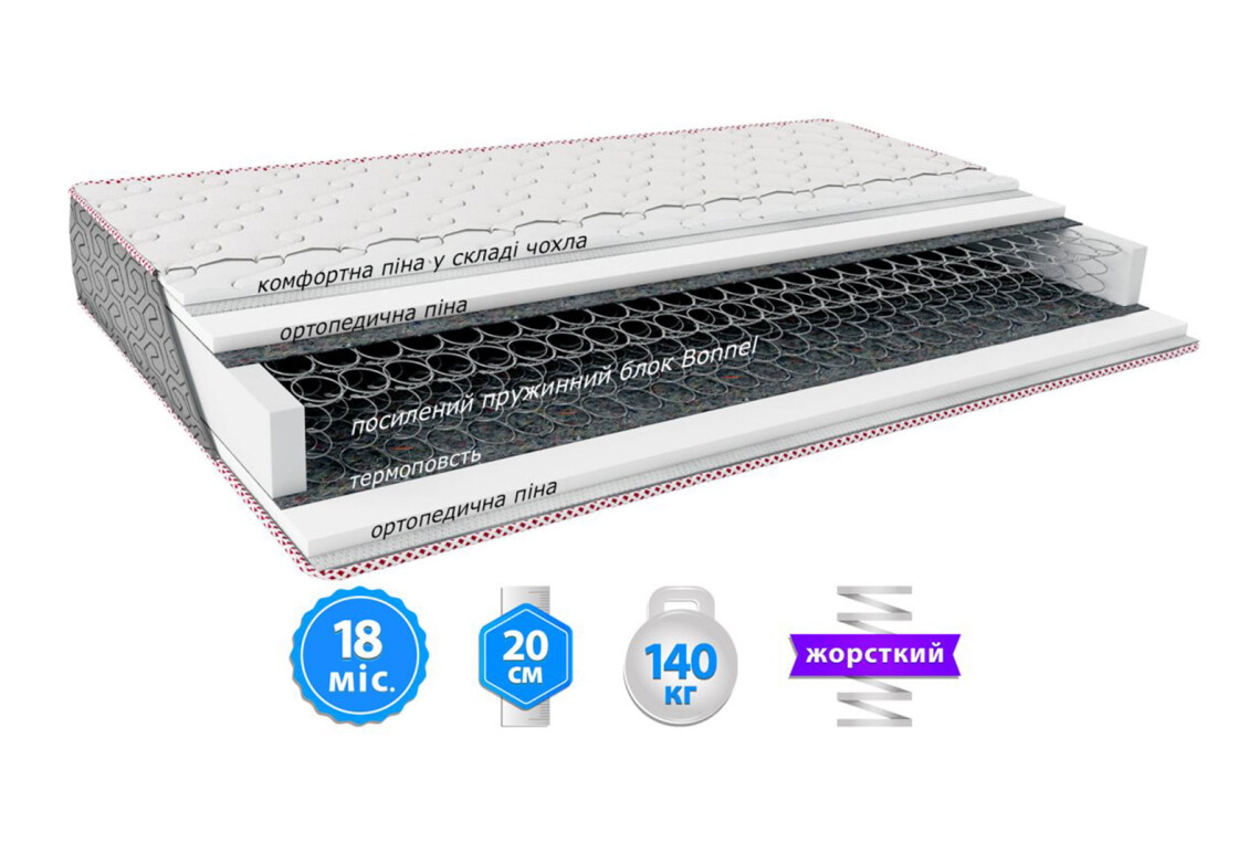 - Тип матраца: На класичній пружині Bonnel – перевірена технологія, що забезпечує тривалий термін служби.