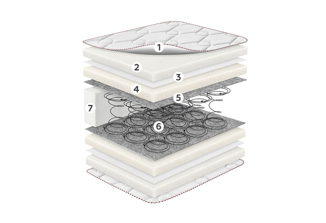 - Кількість пружин на 1м²: 150 шт – забезпечують рівномірний розподіл навантаження та підтримку тіла.