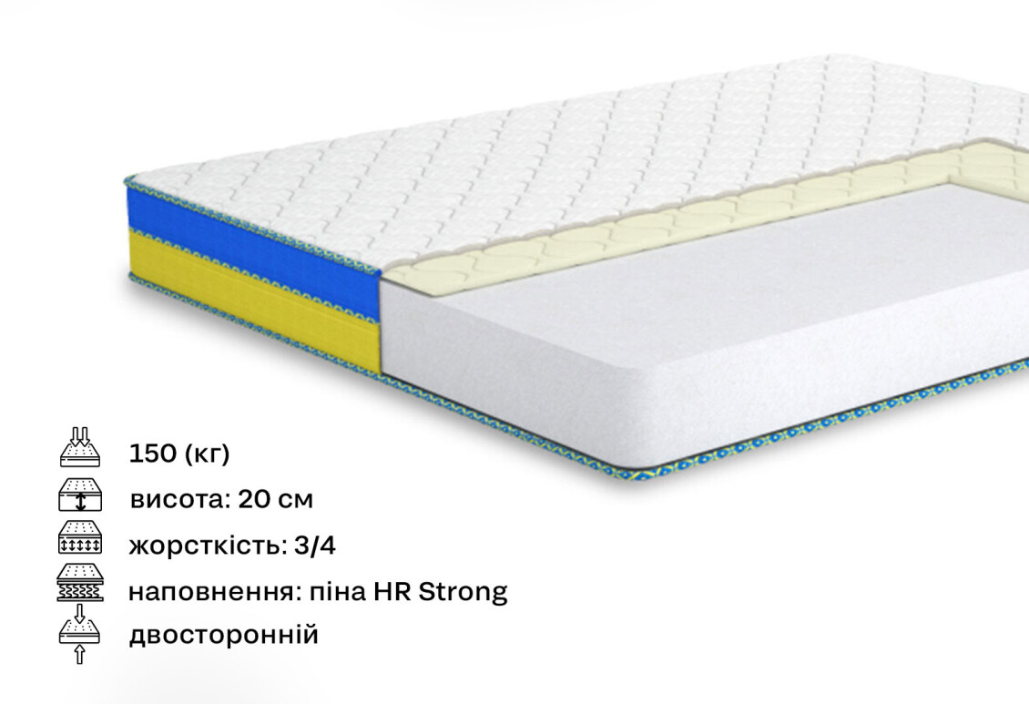 - Наповнення матраца: strong foam support, memory foam – забезпечує комфорт та підтримку під час сну.
