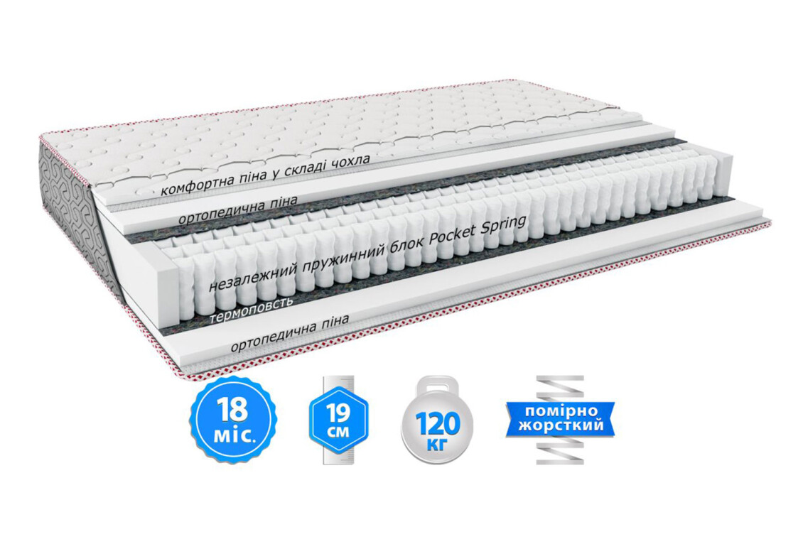 - Наповнення матраца: пружини Pocket spring, піна, термоповсть – для максимального комфорту та підтримки.
