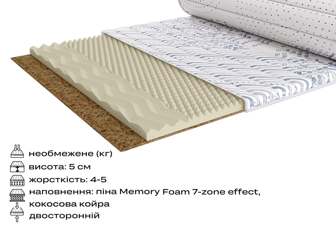 - Наповнення матраца: кокос і піна, які забезпечують відмінну підтримку та комфорт під час сну