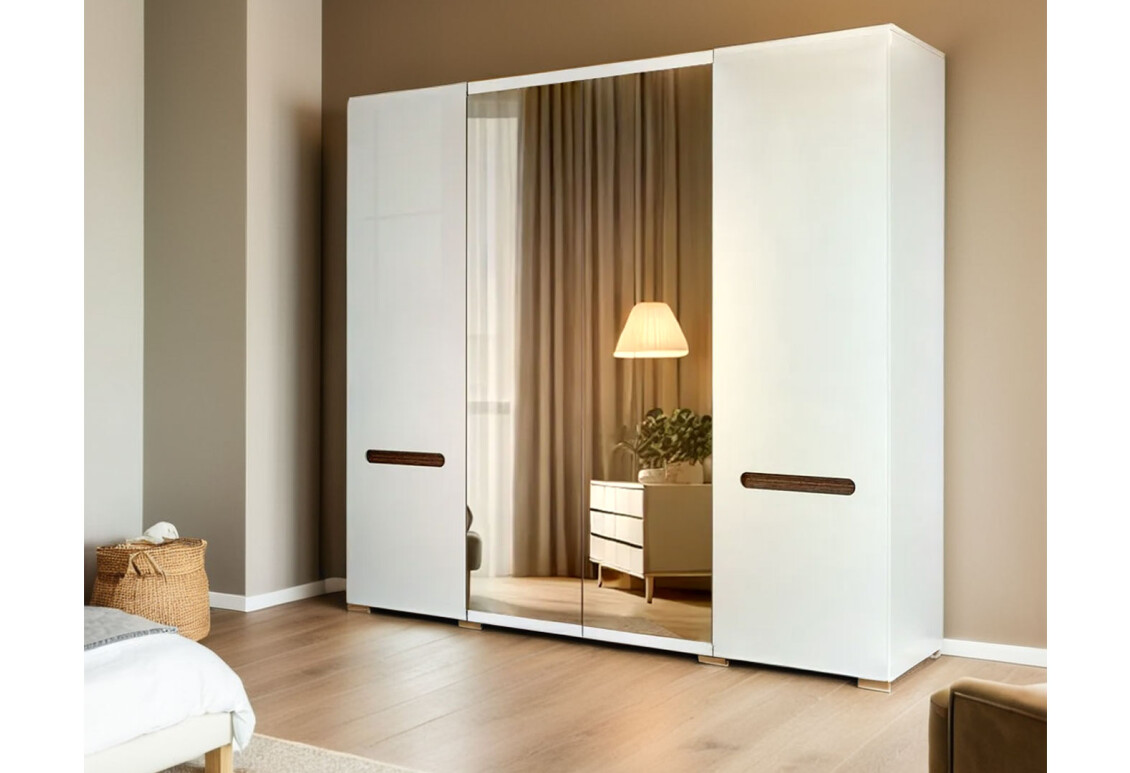 Шафа ВМК Ацтека 4-дверна з дзеркалом – це ідеальне рішення для тих, хто цінує простір, комфорт та стиль. Заввишки 210 см та завширшки 220 см, вона забезпечує достатньо місця для зберігання одягу та інших речей. Завдяки сучасному дизайну в білому кольорі, ця шафа стане чудовим доповненням до будь-якого інтер'єру, підкреслюючи його елегантність. Виготовлена з високоякісних матеріалів, таких як МДФ та ламінована ДСП, вона відрізняється надійністю та довговічністю. Відсутність ручок надає їй ще більшого мінімалістичного вигляду, що підходить для стилю модерн.