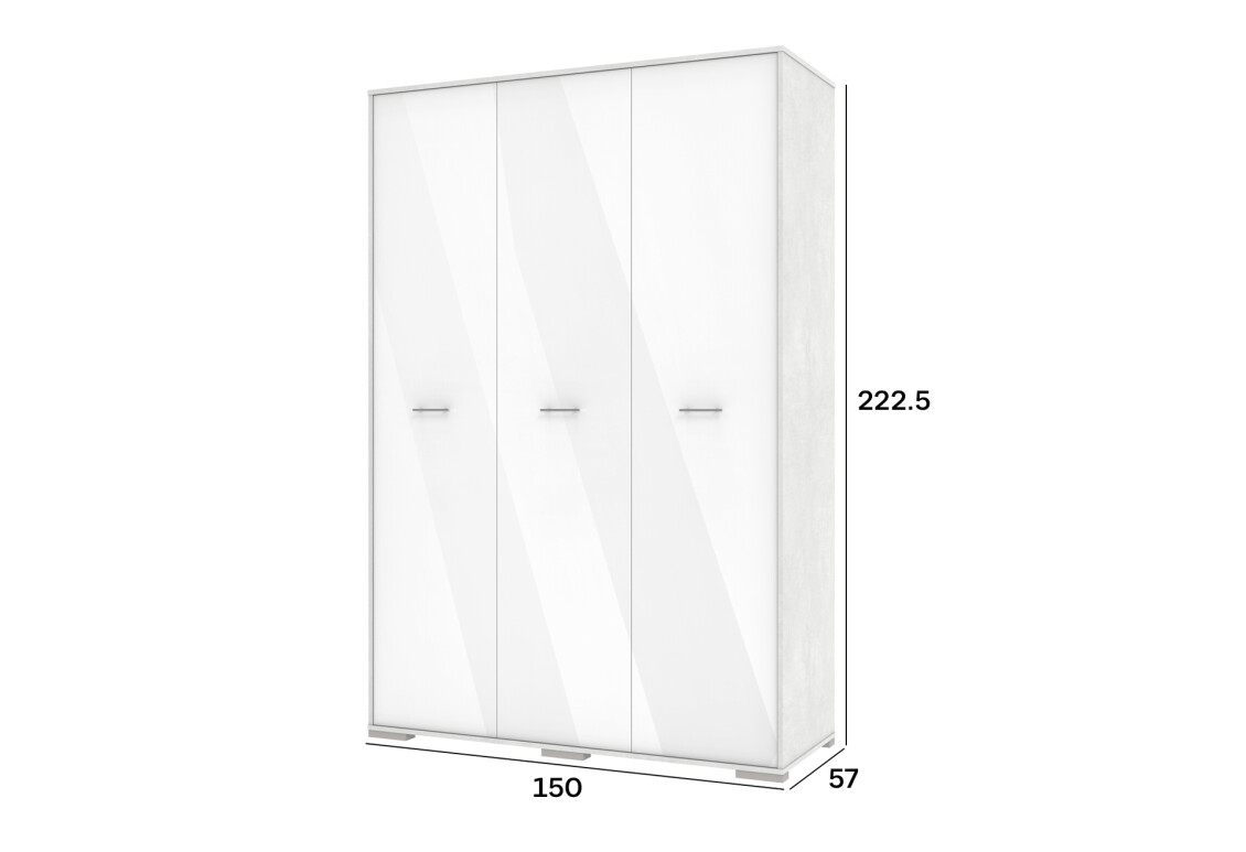- Розмір: ширина 150 см, висота 222,5 см, глибина 57 см – ідеальні габарити для компактного зберігання.