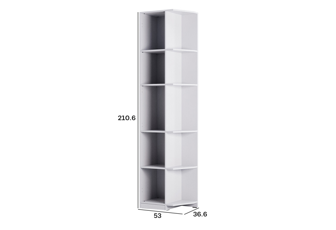 Шафа MiroMark Ідеа / Idea з кутовим закінченням лівого типу – це ідеальне рішення для тих, хто шукає функціональність та естетику в одному виробі. Завдяки своїм компактним розмірам (ширина – 53 см, висота – 210,6 см, глибина – 36,6 см) ця шафа чудово впишеться в будь-який інтер'єр, забезпечуючи ефективне використання простору. Її сучасний стиль та білий глянець надають кімнаті свіжості та легкості, роблячи її привабливою для ока. Виготовлена з ламінованої ДСП, шафа не лише стійка до зносу, а й легка у догляді, що є важливим фактором для сучасного життя. Наповнення шафи складається з полиць, що дозволяє організувати ваші речі максимально зручно та доступно.