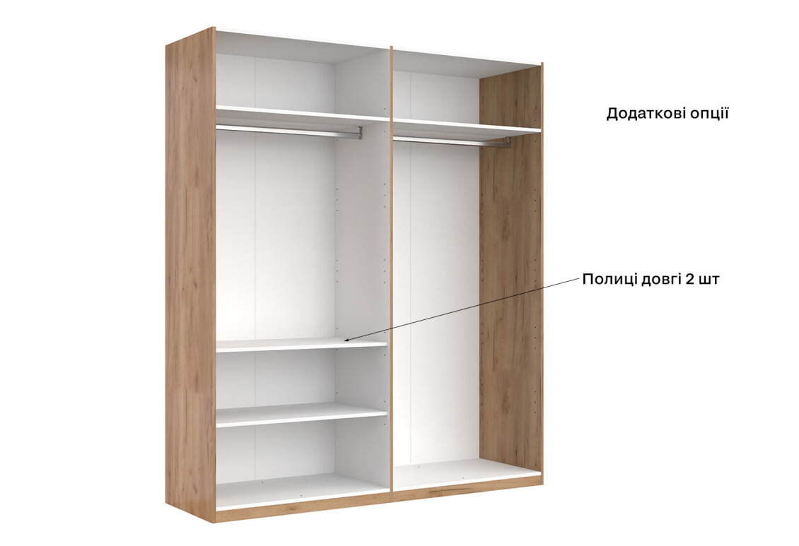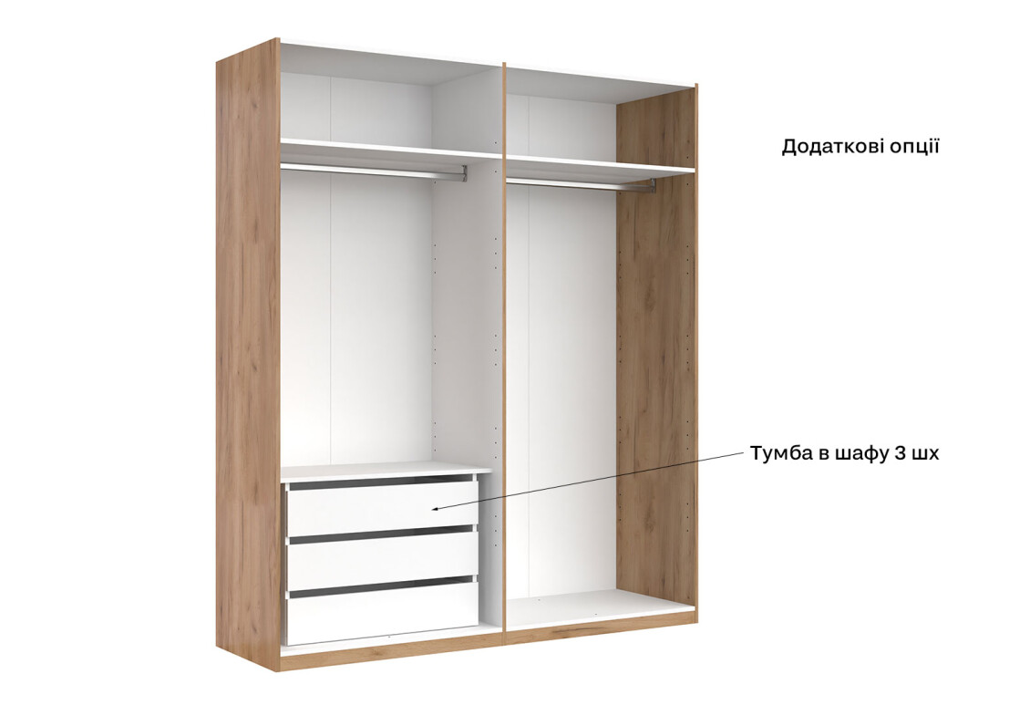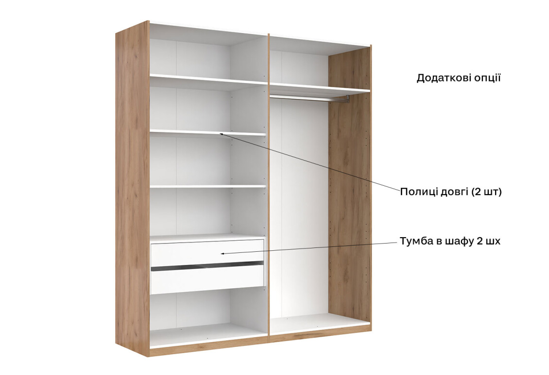 Шафа MiroMark Луна є частиною модульної системи Луна, яка складається з 120 елементів товарів. Ви можете підібрати різноманітні меблі, такі як тумби під TV, комоди, письмові столи, односпальні та двоспальні ліжка, кутові шафи-купе, туалетні столики, вішалки для одягу, звичайні шафи, пенали, взуттєві тумби, приліжкові тумби, вітрини, настінні полки, крісла, пуфи та дзеркала. Це дозволяє створити гармонійний та стильний інтер'єр, що відповідає вашим потребам і смакам.