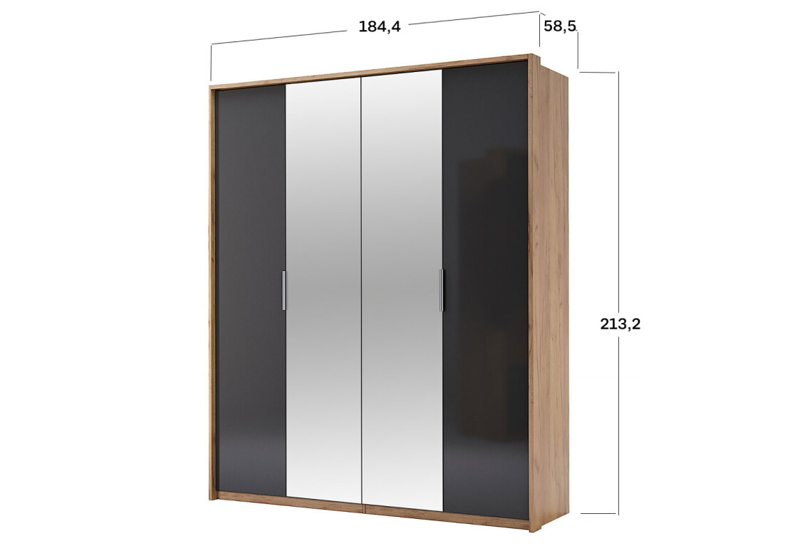 Шафа MiroMark Луна 4-дверна з дзеркалами – це ідеальний варіант для тих, хто цінує поєднання функціональності та елегантності. Завдяки своїм розмірам (ширина 184 см, висота 213 см, глибина 58,5 см) вона стане чудовим доповненням до будь-якої спальні або вітальні, забезпечуючи достатньо місця для зберігання одягу та інших речей. Виготовлена з ламінованої ДСП, шафа має стильний фасад, що поєднує в собі ламіновану поверхню та дзеркала, які візуально розширюють простір. Металеві ручки додають сучасного вигляду та зручності у використанні. Колірна гамма лава/дуб крафт робить цю шафу універсальною для будь-якого інтер'єру, а також дозволяє легко поєднувати її з іншими меблями.