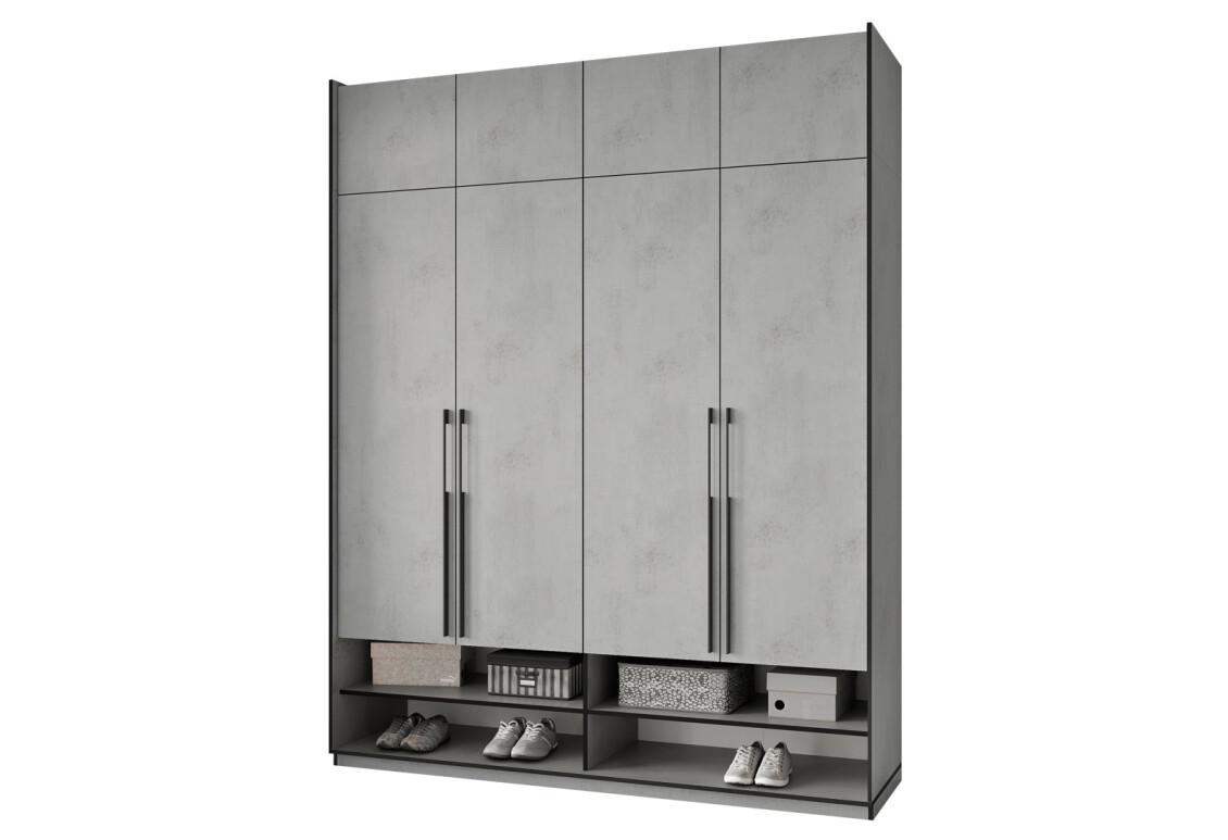 - Шафа Moreli Ramo / Рамо R-0010 4-дверна зі штангою справа та полицями 197 см, бетон тефра, 1 шт – 196.80 см x 210.00 см x 57.00 см