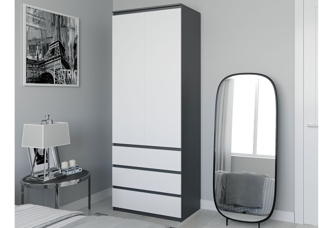 Шафа Moreli Т211 — це ідеальне рішення для організації вашого простору. Завдяки своїм компактним розмірам (ширина 80 см, висота 211 см, глибина 50 см) вона стане чудовим доповненням до будь-якої кімнати, забезпечуючи достатньо місця для зберігання одягу та аксесуарів. Ця 2-дверна шафа виготовлена з ламінованої ДСП, що гарантує її надійність та довговічність. Сучасний стиль в поєднанні з кольоровою гамою антрацит/білий робить її універсальною для будь-якого інтер'єру. Шафа обладнана штангою для вішалок та практичними шухлядами, що дозволяє зручно зберігати речі. Важливо, що даний товар доступний у різних колірних модифікаціях, що дозволяє підібрати оптимальний варіант під ваш смак: білий, дуб сонома, венге магія та інші.