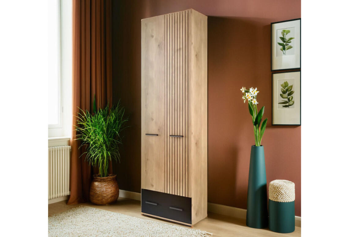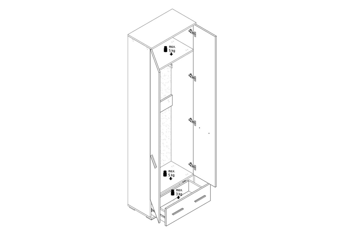 Шафа доступна в двох модифікаціях кольору: дуб артизан / антрацит та дуб білий / чорний, що дозволяє підібрати варіант, який найкраще впишеться у ваш інтер'єр.