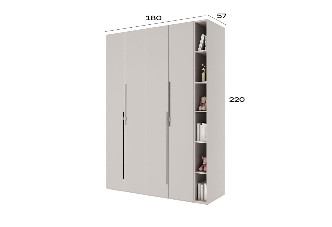 - Розмір: ширина 180 см, висота 220 см, глибина 57 см — ідеальні пропорції для зручного використання.