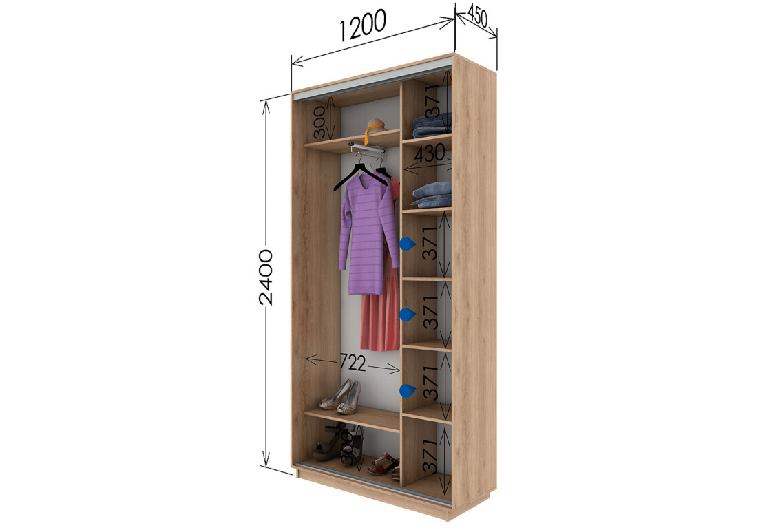 - Тип шафи-купе: 2D – дві двері забезпечують легкий доступ до вмісту шафи.