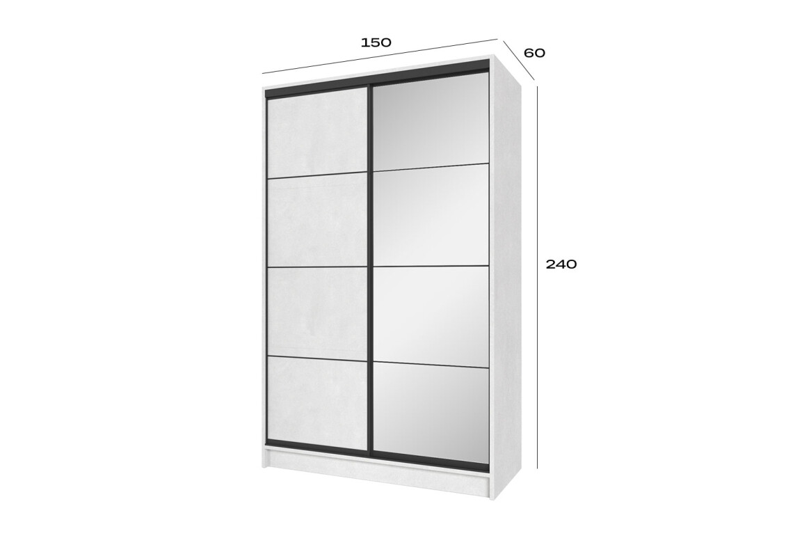 Характеристики товару Шафа-купе Київський Стандарт 2Д 1500х2400х600 комбіновані ДСП + Дзеркало, бетон стайл
