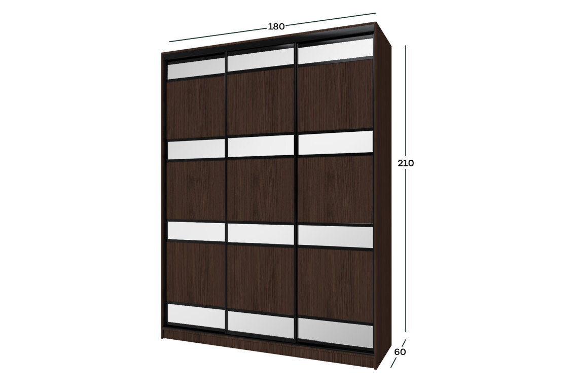 Характеристики товару Шафа-купе MebelStar 3-дверна 1800х2100х600 фасади комбі, венге магія