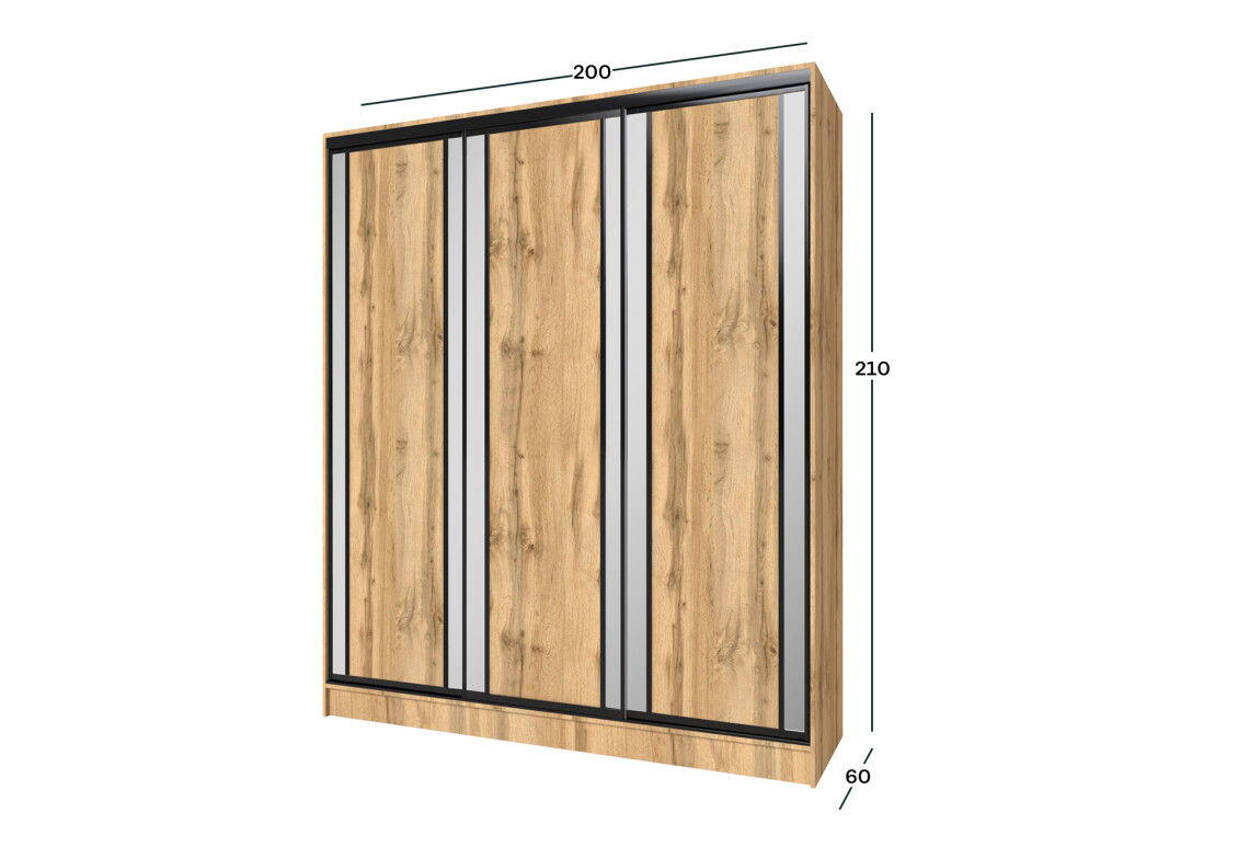 - Розмір: ширина 200.00 см, висота 210.00 см, глибина 60.00 см – ідеальні габарити для оптимального використання простору.