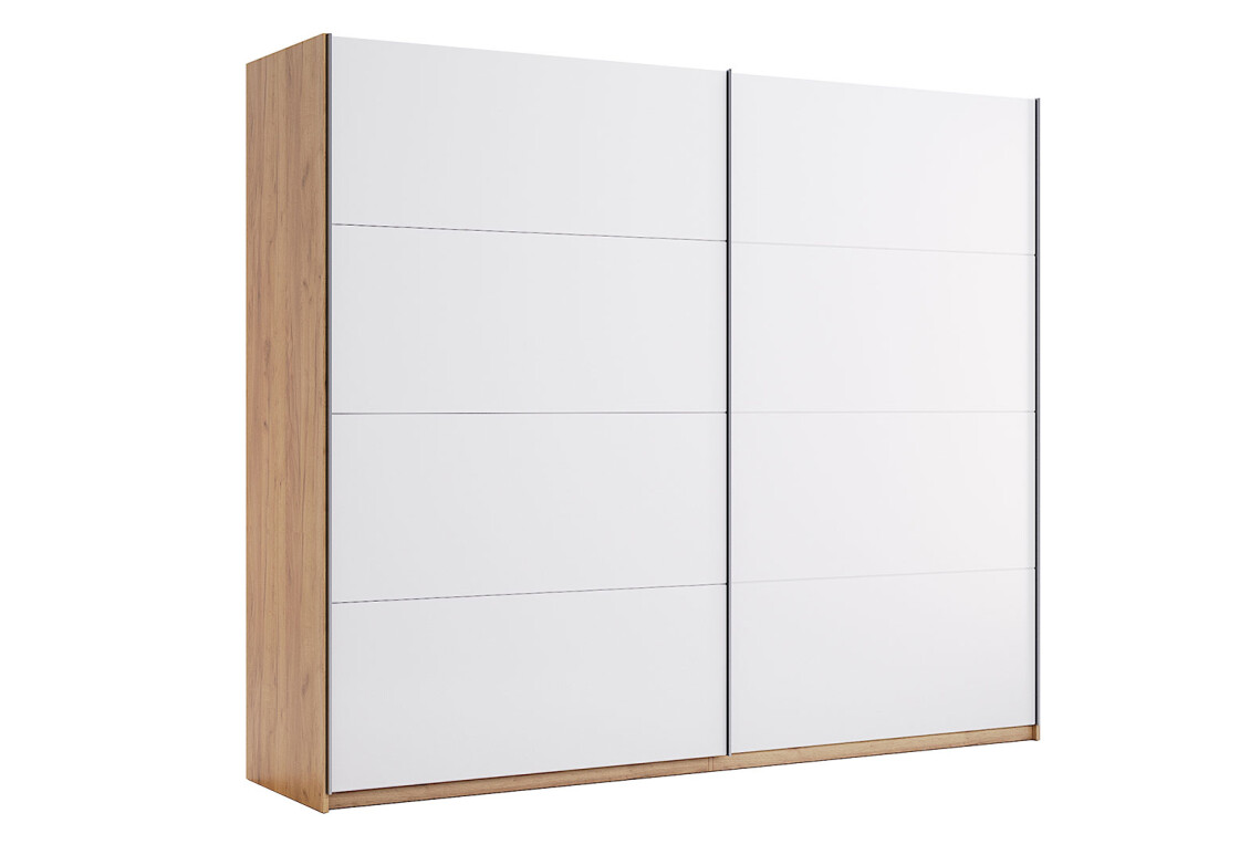 Шафа-купе MiroMark Асті 2-дверна — це ідеальне рішення для організації простору вашої оселі. Завдяки своїм розмірам 250х210 см, вона надає достатньо місця для зберігання одягу та інших речей, зберігаючи при цьому стильний вигляд. Виготовлена з якісної ламінованої ДСП, ця шафа відрізняється надійністю та довговічністю. Глянцева поверхня фасаду в кольорі дуб крафт/білий надає їй сучасного вигляду, що гармонійно впишеться в будь-який інтер'єр. Модерн-стиль шафи додає елегантності, а простота в догляді робить її ще більш привабливою для покупців. Завдяки своїй конструкції, шафа забезпечує легкий доступ до ваших речей, а також допомагає підтримувати порядок у приміщенні.