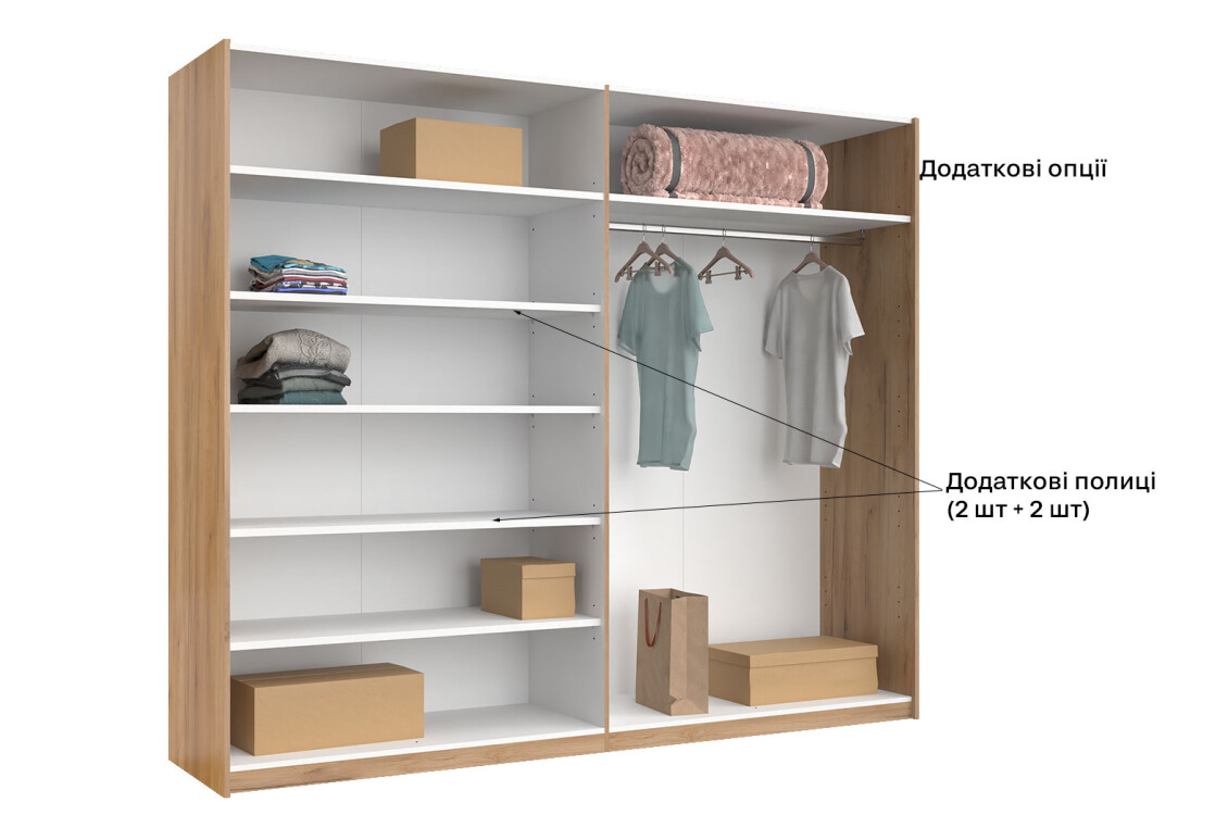 - Тип шафи-купе: 2D, що дозволяє зручно відкривати двері та зберігати речі